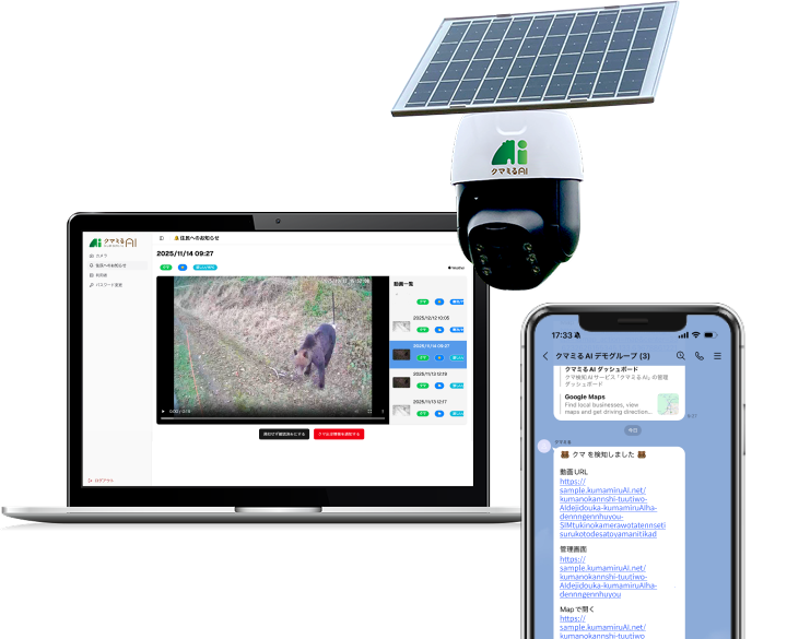 クマの出没検知から住民へのお知らせまでを一貫して対応可能